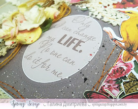 В наборе 12 листов скрапбумаги и крафтовый лист А4 для вырезания. Для декора я использовала набор Высечек "Chronical of botany", в который ещё входят пайетки и золотая прищепочка (её можно увидеть на обложке альбома). Чипборд "Chronicle of Botany" 2.